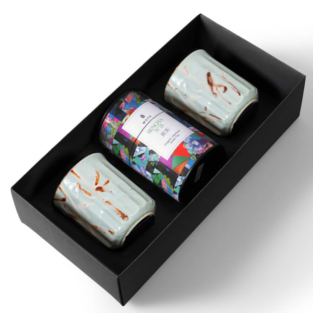 Questa tazza da tè straordinaria è stata prodotta nello stile della ceramica Shino nella città di Toki, sull’isola giapponese di Honshū. Da anni vi si producono piatti secondo la tradizione giapponese del tè. Il recipiente viene inizialmente modellato con uno stampo, poi la forma e le decorazioni finali vengono realizzate a mano, rendendo ogni tazza unica.