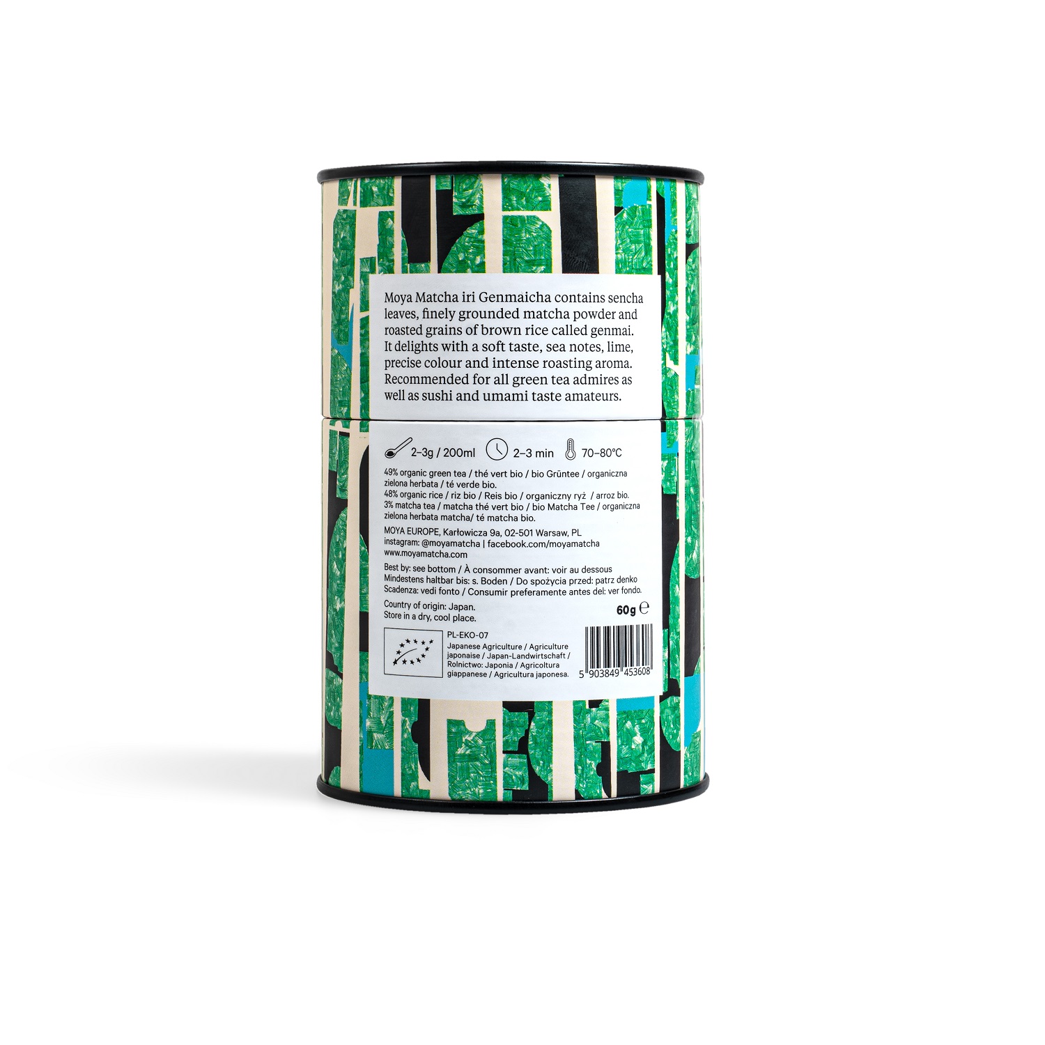 Moya Matcha Iri Genmaicha è una miscela gustosa e salutare del nostro bestseller di tè verde in foglie biologico Genmaicha e Matcha Daily. Contiene delicate foglie di sencha, riso integrale biologico tostato che in giapponese si chiama “genmai” e matcha certificato finemente macinato. Il gusto del Matcha Iri Genmaicha è morbido e ricorda il dolce burro fresco del mattino con forti note marine umami. Dopo l’infusione, questo tè sprigiona un forte aroma di tostatura e prende un bel colore lime chiaro. Consigliato a tutti gli estimatori del tè verde, sarà apprezzato soprattutto da chi ama il sushi, il gusto umami e sente la mancanza dell’autentico cibo asiatico nella vita di tutti i giorni.